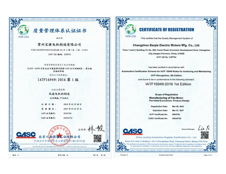 常州寶捷電機制造有限公司,成立于2001年。專業(yè)從事各類單相交流電機、高效節(jié)能電機及機電一體化產(chǎn)品的設(shè)計開發(fā)、生產(chǎn)制造、銷售服務(wù)的中美合資企業(yè)。產(chǎn)品主要應(yīng)用于各類家用及商用空調(diào)器、各類電器及特種移動車輛行業(yè)。產(chǎn)品符合UL、CE、CSA、SASO、CCC、ROHS等國際標(biāo)準(zhǔn),全部出口歐美等國際市場。公司獲得IATF16949:2016質(zhì)量體系認證,擁有UL認證實驗室,應(yīng)用SAP精益管理系統(tǒng),為國內(nèi)外客戶提供優(yōu)質(zhì)的產(chǎn)品和服務(wù)!